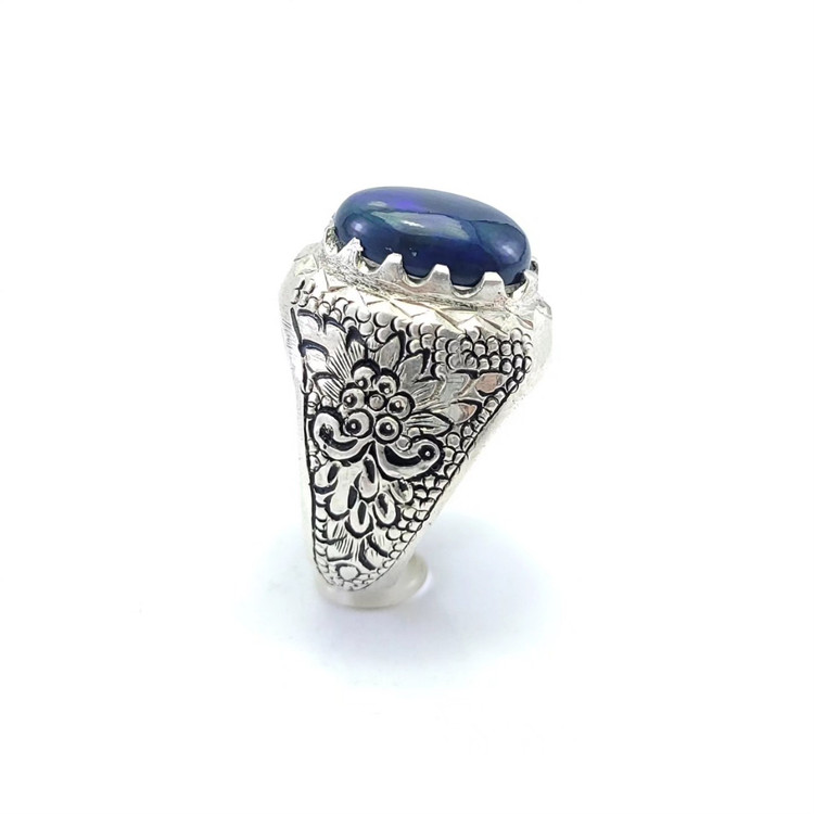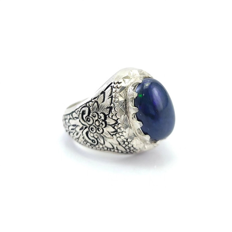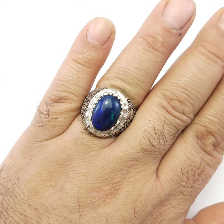 انگشتر دستساز مردانه اوپال سیاه آفریقا کد 5846