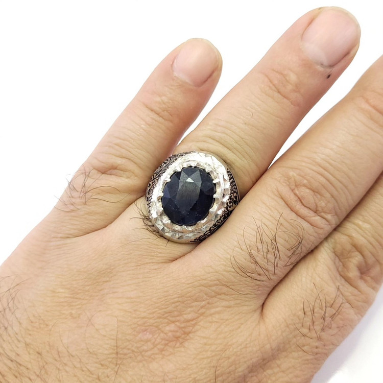 انگشتر دستساز مردانه یاقوت کبود آفریقا کد 7295