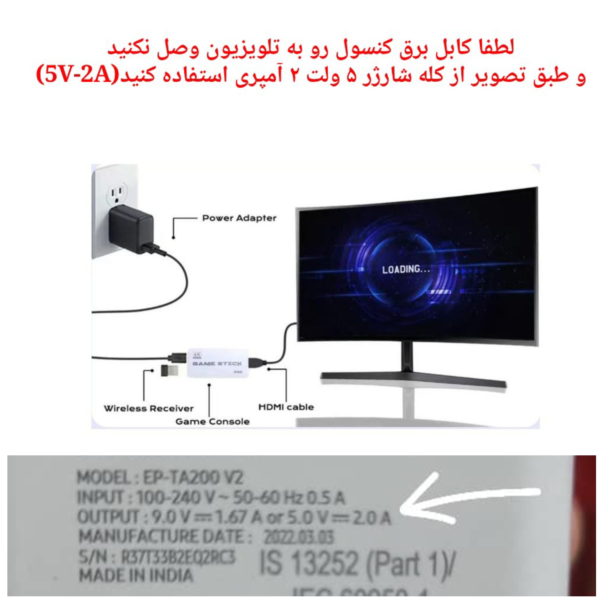 *** لطفا کابل برق کنسول را به تلویزیون وصل نکنید و از کله شارژر ۵ ولت ۲ آمپری استفاده کنید (5V-2A)