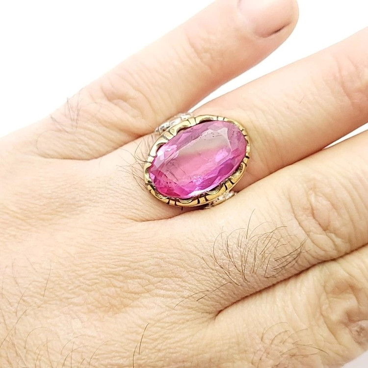 انگشتر نقره مردانه توپاز صورتی کد 87304