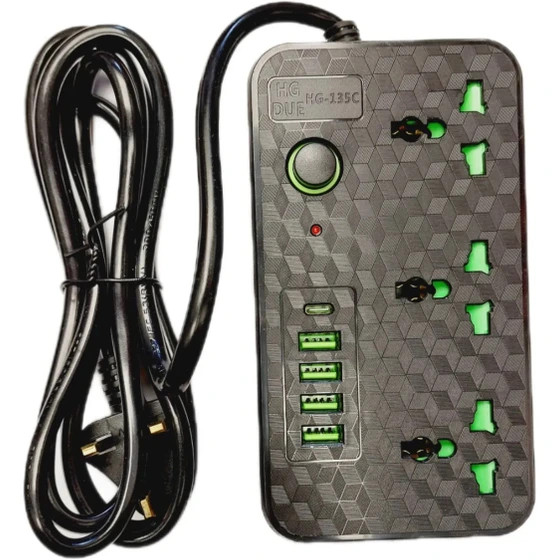 چند راهی و محافظ برق 2 متری مدل HG-135C مشکی