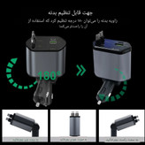 شارژر فندکی خودروی دوکابله جمع شونده 120 وات دارای نمایشگر ولتاژ و محافظ باتری