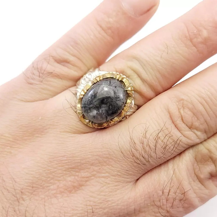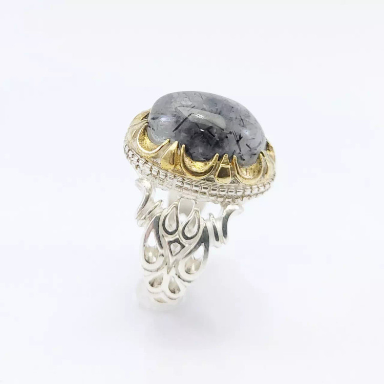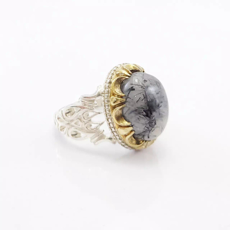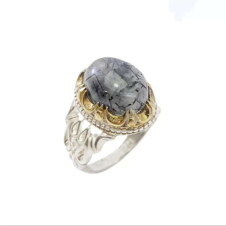 انگشتر نقره مردانه روتایل مویی تاج برنجی