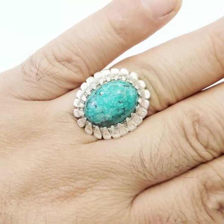 انگشتر نقره مردانه سودالیت سبز طرح گل