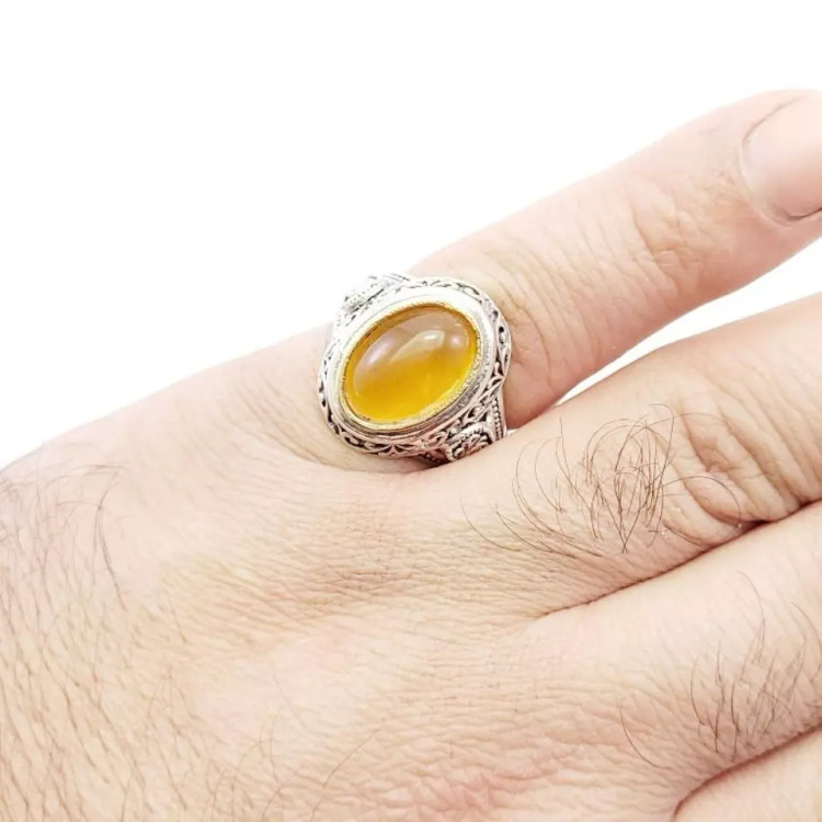 انگشتر نقره مردانه جید پرتقالی کد 48900