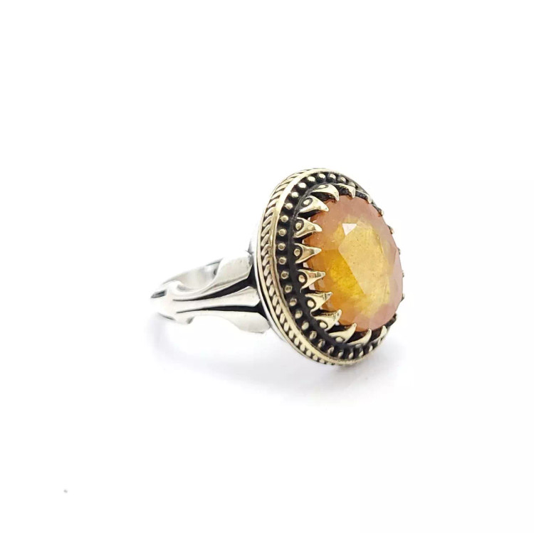 انگشتر نقره مردانه یاقوت زرد آفریقا کد 72363