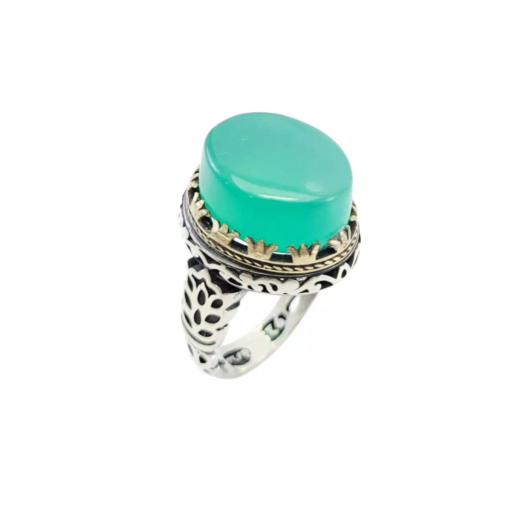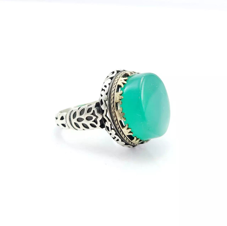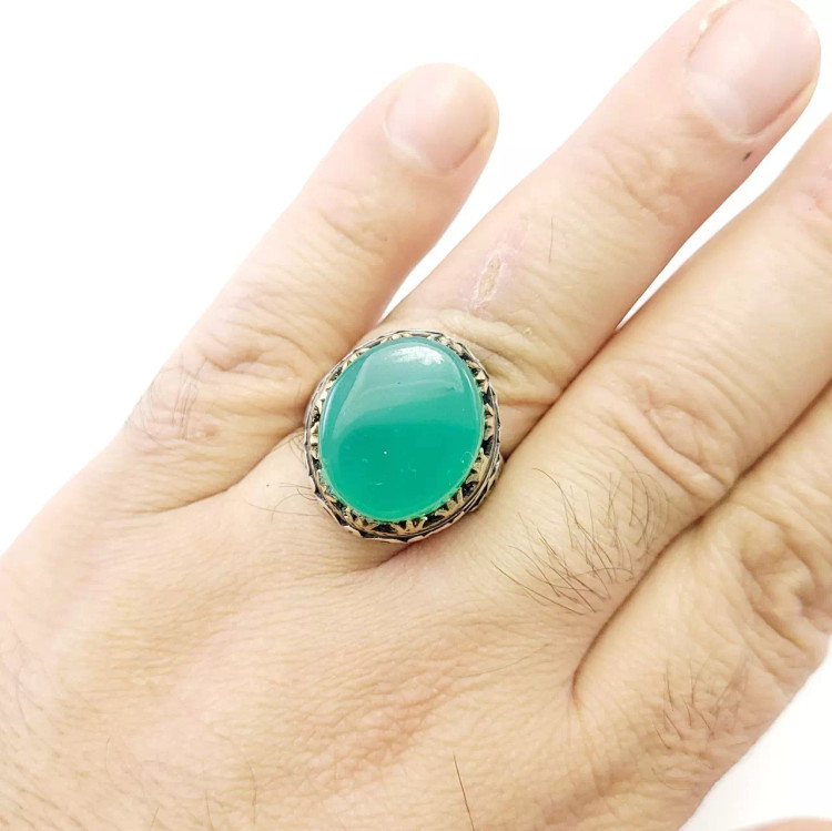 انگشتر نقره مردانه عقیق سبز آبدار کد 13511