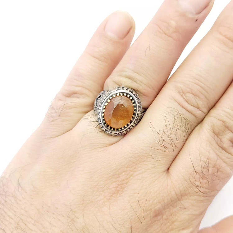 انگشتر نقره مردانه یاقوت زرد آفریقا کد 33673